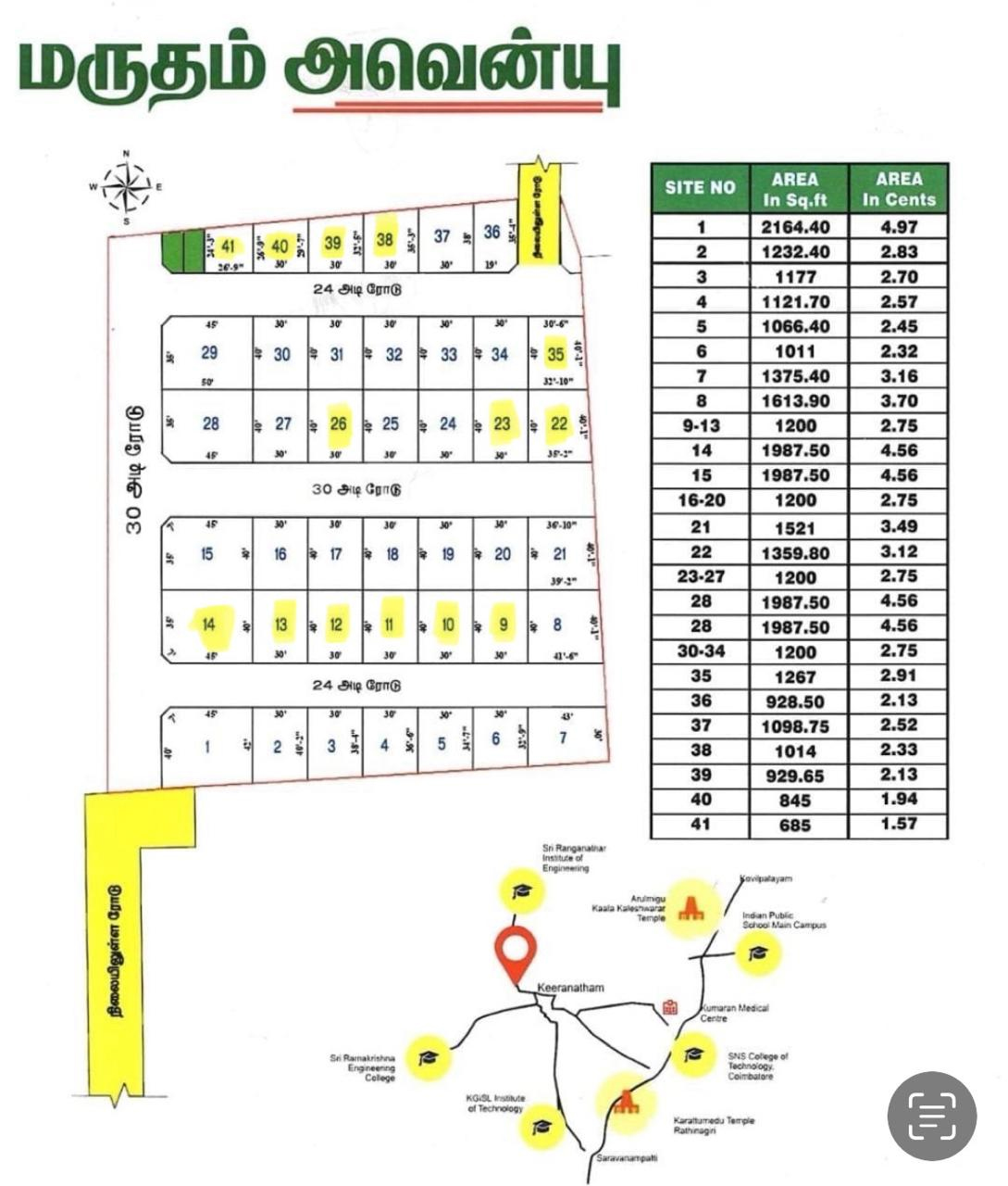 Shree Marutham Avenue is a residential plot by Shree Laksha Promoters & Realtors. This plot is available for sale in Saravanampatty, Coimbatore. This project offers plots in various sizes. The minimum plot size is 685.0 sq.ft. and the maximum size is 2164.0 sq.ft.. This project was launched on March 2023. There are 41 units in Shree Marutham Avenue. The address of Shree Marutham Avenue is Keeranatham, Saravanampatty.Shree Marutham Avenue ensures a coveted lifestyle and offers a convenient living. It offers facilities such as Power Backup. It is aGated Community. Other provisions include access to Storm Water Drains. This residential land for sale is RERA approved. For details, check RERA ID Rera Not Applicable. Shree Laksha Promoters & Realtors is a reputed developer firm established in 2009. The firm has since then developed 5 and focuses on customer-centricity. Check out Shree Marutham Avenue brochure for more details. Saravanampatty is well-connected to other parts of city by road, which passes through the heart of this suburb. Prominent shopping malls, movie theatres, school, and hospitals are present in proximity of this residential project.